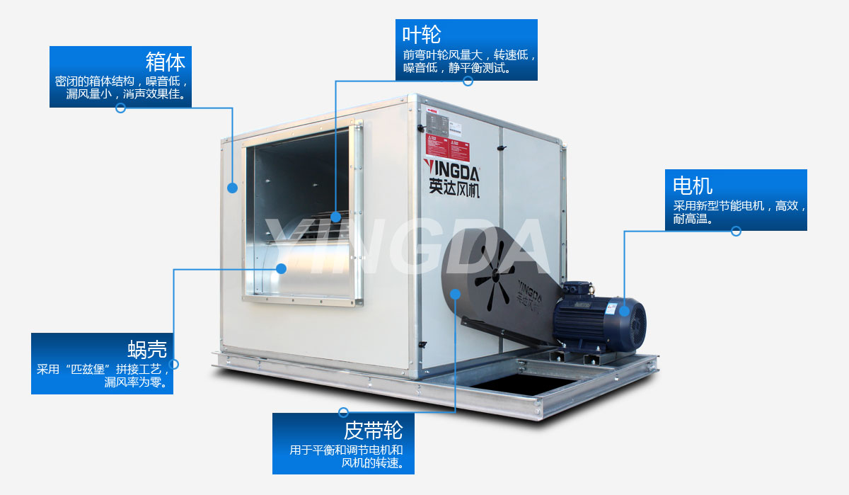英達風機蝸殼采用流線型雙進風結構,“匹茲堡”拼接工藝,漏風率為零;雙側板一次成型,精度高,減小裝配后尺寸誤差;葉片一次沖壓 成型,專門夾具確保葉片安裝精確定位。